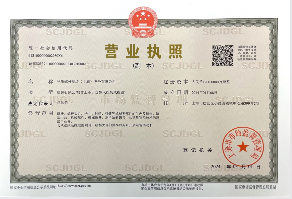 积康螺杆制造(上海)股份有限公司座落于美丽的东方之珠——上海。优雅的创业环境及便利的交通优势,成就了一批又一批上海知名品牌,积康公司的前瞻性、高效性和创新的思维,在“以质量为基石,以科技为实力”的公司经营理念下,相信不久的将来,美丽的东方之都,又会蕴育出塑料机械行业又一灿烂明珠!